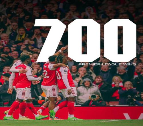 阿森纳成为继曼联(760胜)之后,第二支达成英超700胜里程碑的球队。