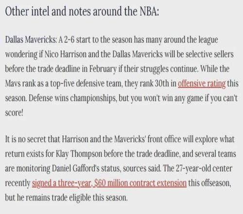 据美国篮球记者Brett Siegel报道,小牛总经理尼克·哈里森正尝试在季中交易截止日之前送走汤普森,这已是公开的秘密。