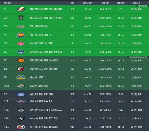 北京时间11月12日,今日的NBA常规赛结束了所有比赛,我们一起看看西部最新积分榜变动!