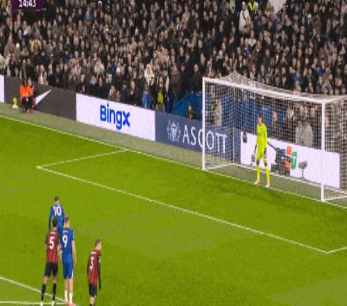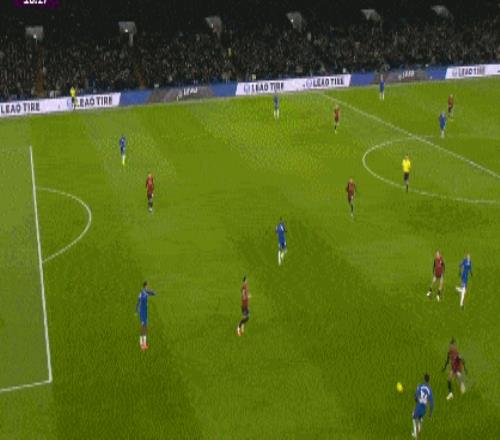 第10分钟,埃斯特旺带球突入禁区,被塞门约推倒在地,主裁没有表示,随后VAR介入,主裁到场边观看视频回放,判给切尔西点球,帕尔默主罚命中,切尔西扳平。