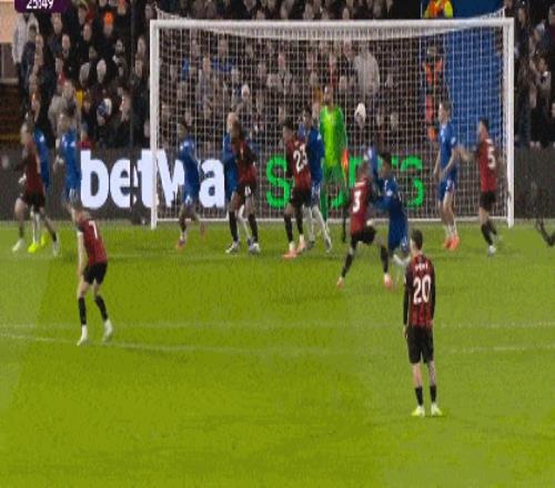 第7分钟,伯恩茅斯界外球掷到禁区内,前点头球后蹭,布鲁克斯后点头球攻门,球被桑切斯扑出,布鲁克斯跟进门线捅射得手,VAR确认进球有效,伯恩茅斯1-0领先。