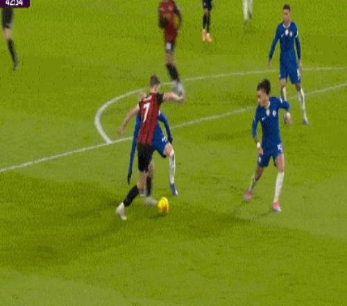 第42分钟,布鲁克斯右路下底传中,切尔西禁区内风声鹤唳将球解围。