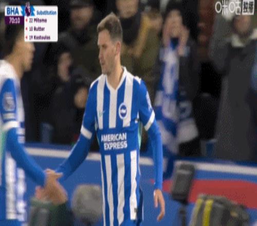 第29分钟,吕特小角度破门,布莱顿1-0伯恩利