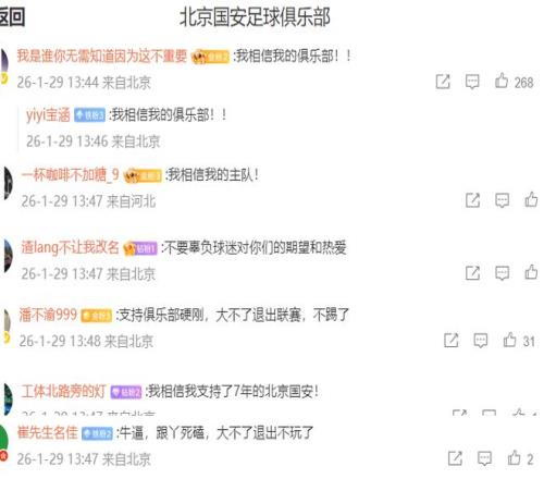 破防!北京国安球迷:我相信我的主队,大不了退出不踢了