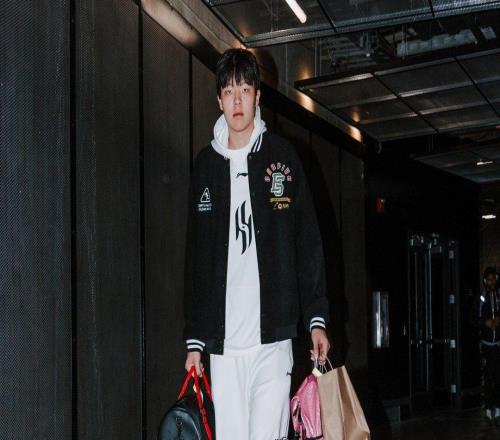 开拓者官方社媒晒出赛前入场照:杨瀚森依旧拿着粉色小书包 -