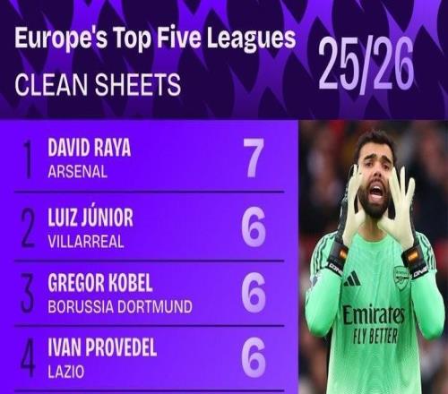 本赛季五大联赛门将零封榜:戴维拉亚7次零封居首 -